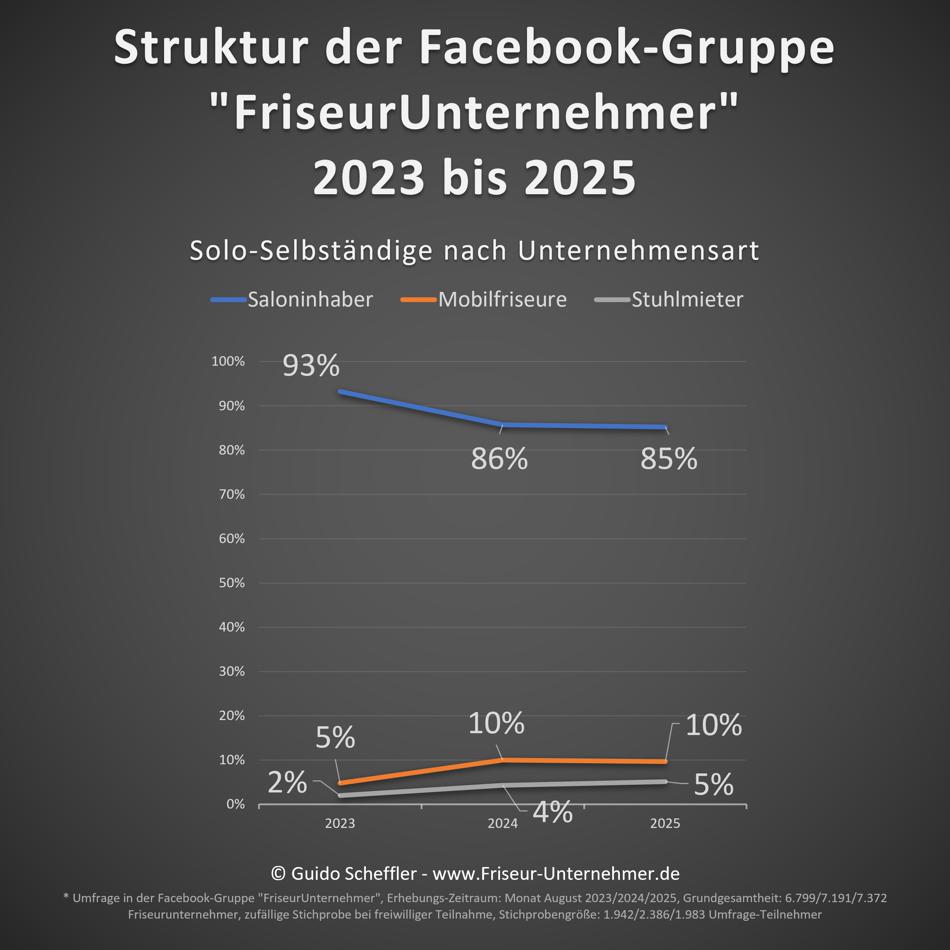 Vermutlich sind einige dieser soloselbständigen Saloninhaber auf das Modell der Stuhlmiete umgestiegen. Das erklärt den leichten Anstieg von 1 % in dieser Kategorie.